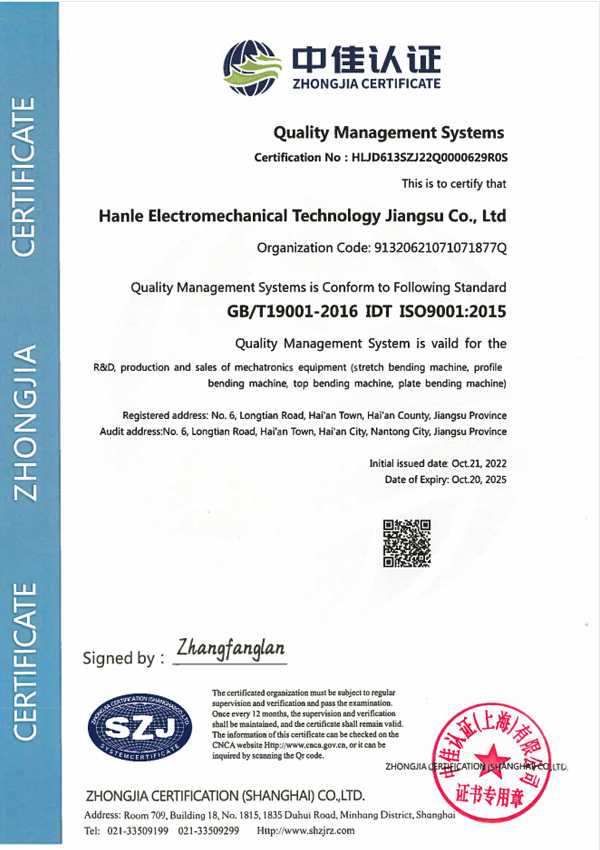 質量管理體系認證證書